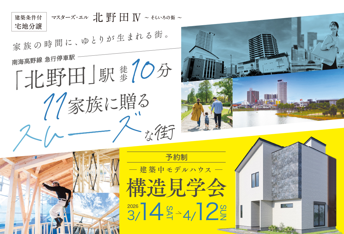 南海高野線「北野田」駅まで徒歩10分、全11区画の新街区。北野田に、新しいスムーズな街 誕生。
